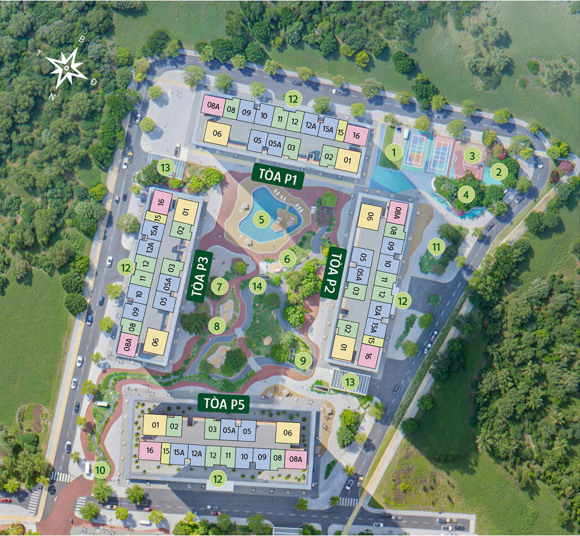 - Tòa căn hộ mở bán: P1, P2, P3, P5